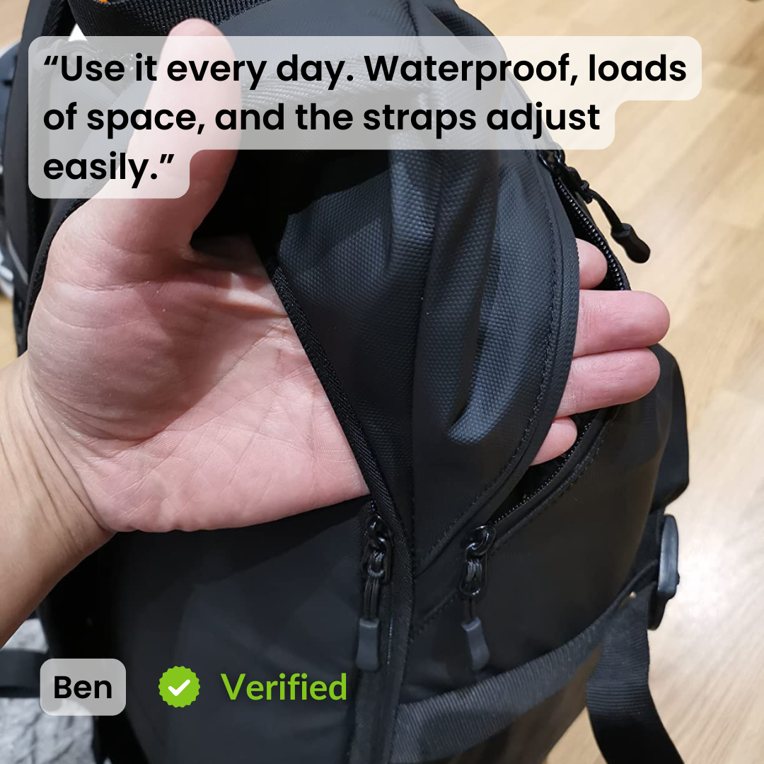 Premium, fully-sealed waterproof zippers keep rain, snow, and road spray from seeping in. Your gear stays bone-dry in all weather, so you can ride without worrying about your laptop, clothes, or documents.