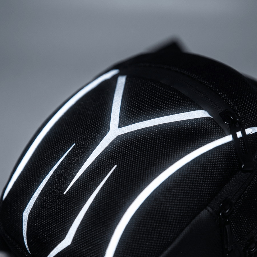Reflective silver strips and Y logo design catch headlights at night, keeping you visible to other drivers in low-light conditions.